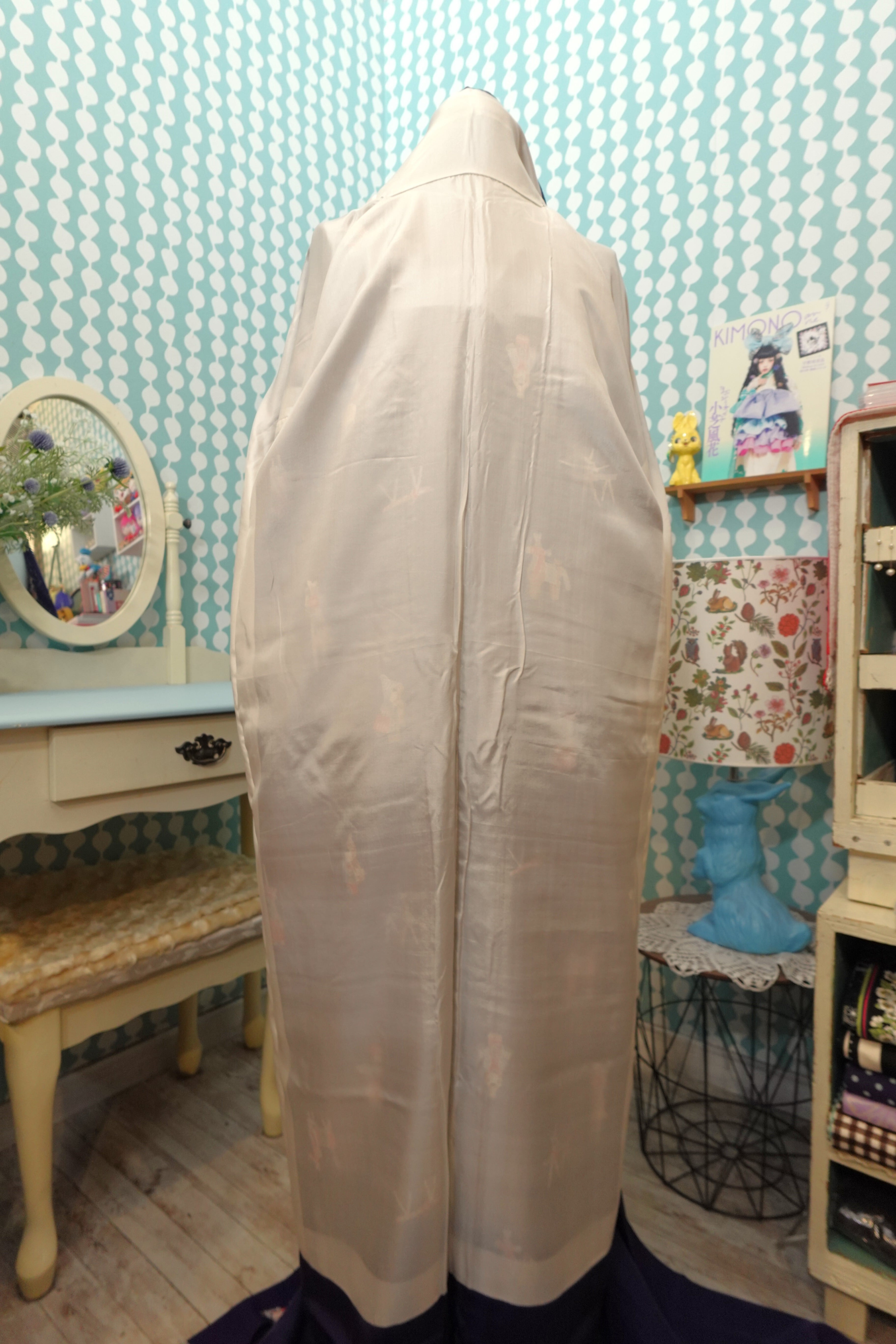 可愛らしい郷土玩具柄の縮緬の袷着物です。