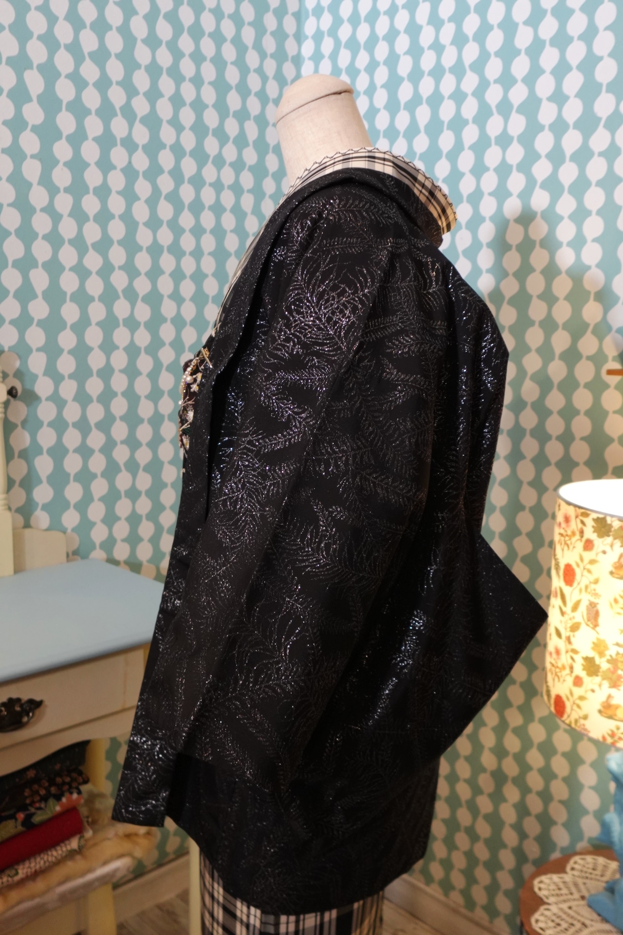 黒地にキラキラ刺繍の羽織【着丈71.5cm】