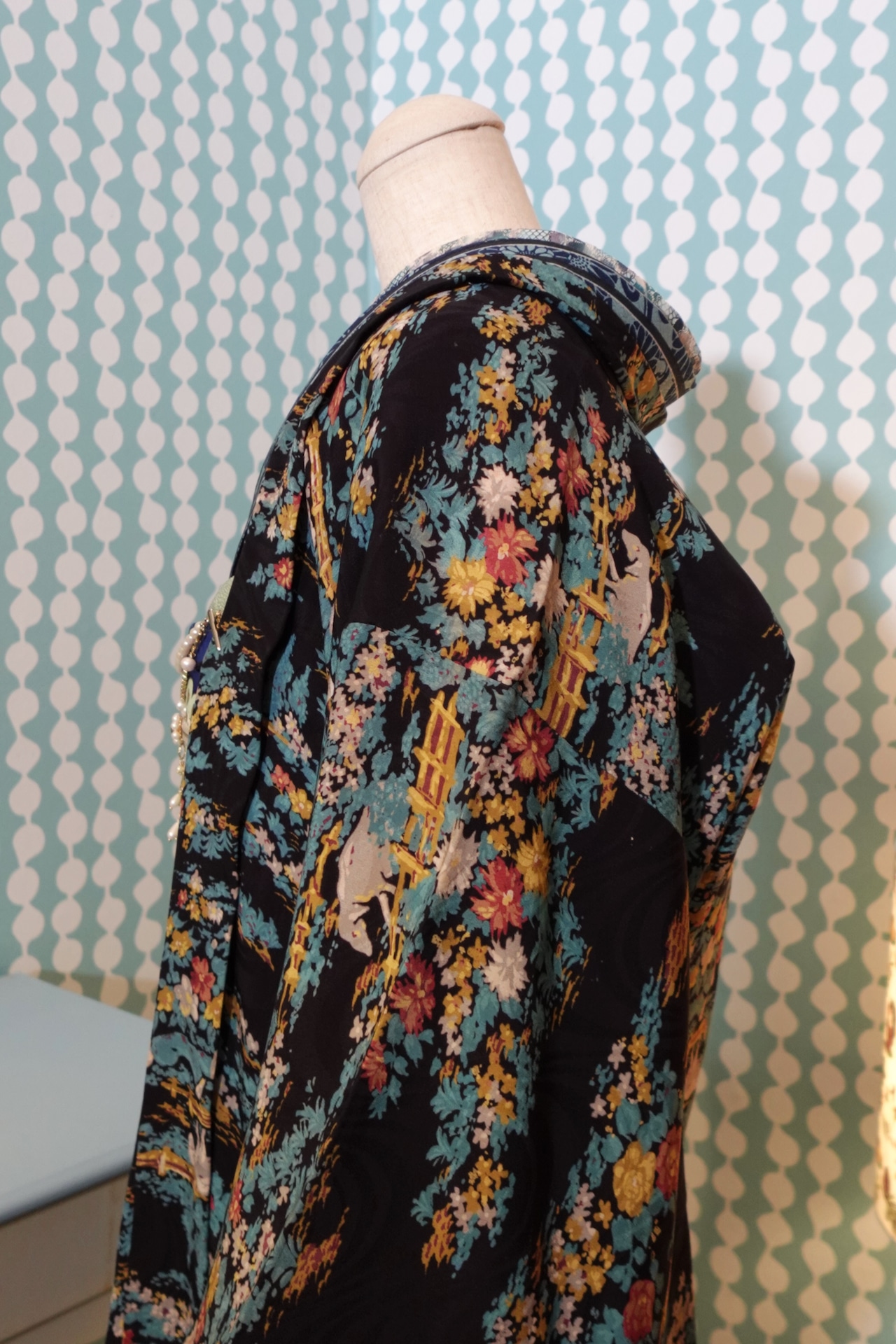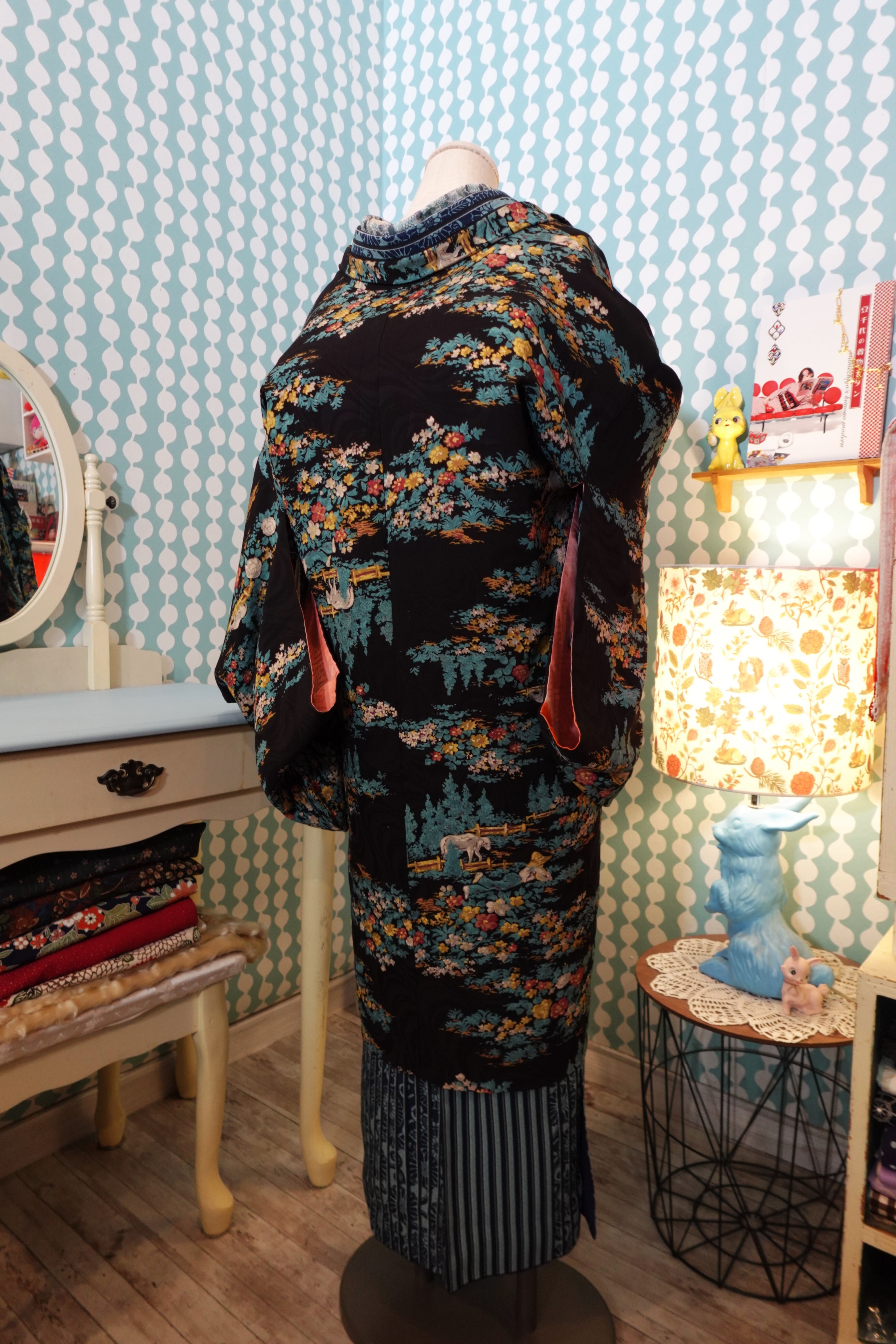 不思議な庭柄のアンティーク長羽織【着丈94cm】